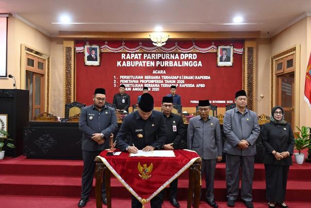 SERAYUNEWS- Pemkab Purbalingga melaksanakan penyerahan Surat Keputusan (SK) pengangkatan kepada 40 Calon Pegawai Negeri Sipil (CPNS) Formasi Tahun 2024, di Pendapa Dipokusumo, Senin (2/6/2025). Penyerahan dilakukan oleh Bupati Purbalingga Fahmi Muhammad Hanif didampingi oleh Wabup Dimas Prasetyahani.
