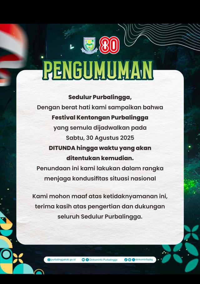 Festival tersebut digelar di Alun-alun Purbalingga, Sabtu malam (13/12/2025), dan disaksikan ribuan warga.