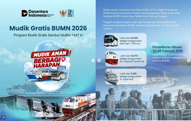 Kuota 100 Ribu Lebih untuk Pemudik! Simak Jadwal Pendaftaran Program Mudik Gratis BUMN 2026